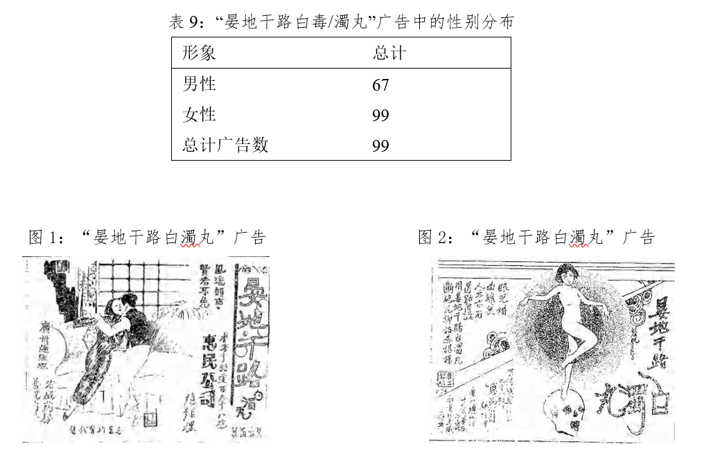 2)《越华报》中的外国商品广告是否对男性与女性的形象有不同的描绘偏好?是否出现女性经常表达生活中的困难,而男性多介绍商品良好的效果,或其他类似的倾向性描绘的情况?