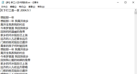 (1)将现有新工人乐团歌词转换为UTF-8格式TXT文本。