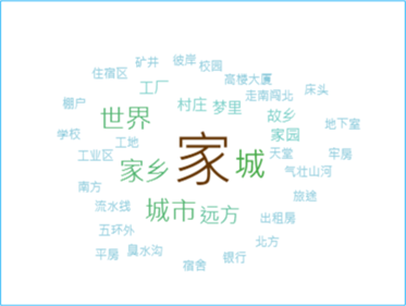 2.空间词频:探究新工人乐团歌曲中,空间词的种类和使用频率,了解新工人群体生活、工作的场所,明晰其流动轨迹。