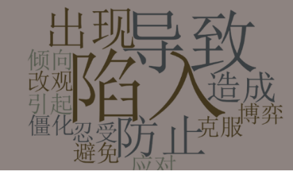 截取部分出现频次较高的动词,发现,2020年之前,话语体系对该行为持有鄙夷的态度,动词多用克服、防止、避免等词汇(图3)。此外,对语料进行共现网络分析,发现内卷与消耗、农业、现象、替代效应等等词汇共同出现(图3)。结合词云图,这就进一步证实了内卷与农业、经济的联系,表示内卷在一开始的大众目光中只是农业、经济方面的术语,用来客观描述农业和经济中的无效增产现象,不带用强烈的情感色彩。