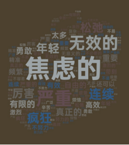 最后,对教育内卷语料中的形容词进行分析,发现内卷相关的形容词包括:焦虑的、严重的、重要的、激烈的、严重的、心疼的等等(图4)。结合一些语段,如:痛恨东亚教育内卷的一切,可是又不得不这么做、撇去消除考前紧张积极因素外,不得不说支持躺平避免内卷是值得商榷的、你还是要在这种内卷中,你要勇敢的突围,在这荒谬中,你要寻找自己的意义等语段,可以发现,该时期人们对内卷存在着矛盾的额心理,一方面认为内卷的存在让人平白无故增加了很多痛苦和苦恼,但是另一方面,又不得不投入内卷,呈现出一种被时代绑架的矛盾状态。