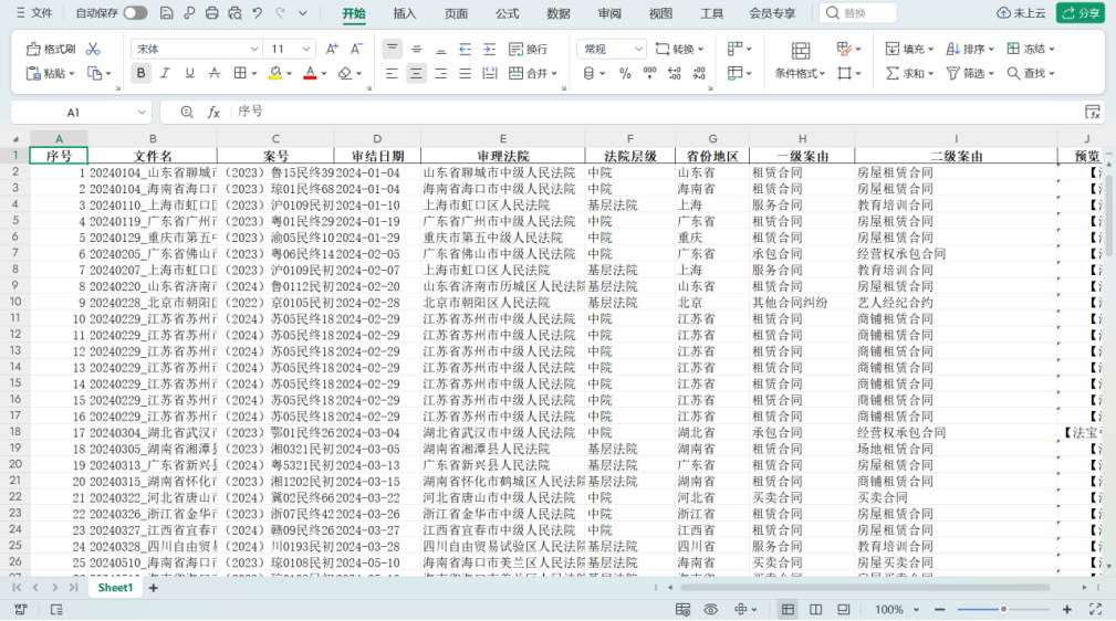 首先,我们借助AI编写Python脚本,从判决书文本中批量提取基础元数据,如案号、审理法院、裁判日期等,并将文件批量重命名。