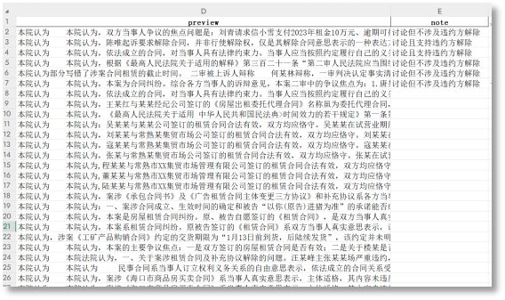 随后将说理和提示词一并提交给DeepSeek模型。Prompt的核心是要求模型扮演法律分析角色,从指定段落中提取关键字段。将97份判决逐一处理,将所有输出结果手工整理到一个Excel表格中,从而将非结构化的判决文本转换为可供统计分析的结构化数据。