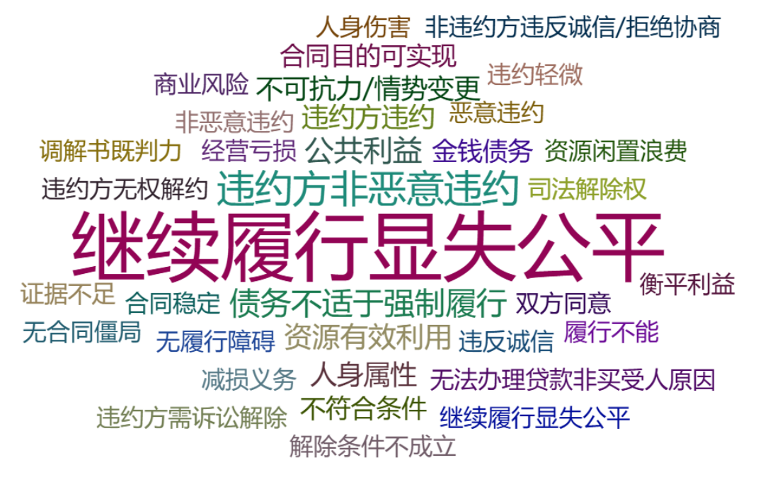 在实践价值上,通过对最新判决的梳理,本研究能够观测“违约方解除合同”的现状,对法院态度、高频理由、案由差异的深入分析。同时,为后续实证研究的确定初步的方法和流程。