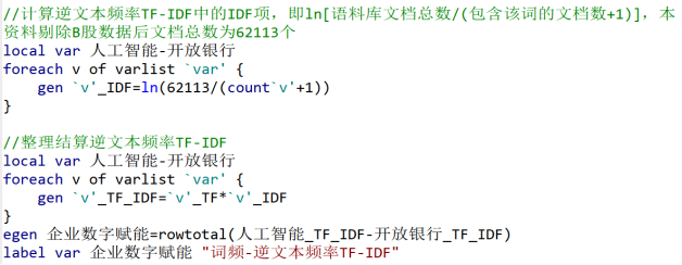 对每一个关键词都计算了TF-IDF值。然后把所有关键词的TF-IDF值加起来,得到“企业数字赋能”指数。这个指数反映了这家公司年报中数字化相关词汇的相对重要性。