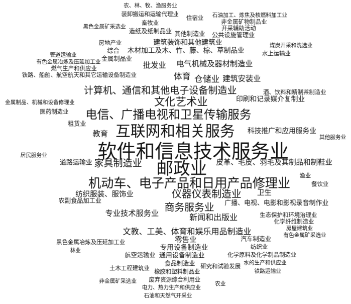 从图上可以看出“软件和信息技术服务业”“邮政业”“互联网相关服务”最为突出,(技术属性)