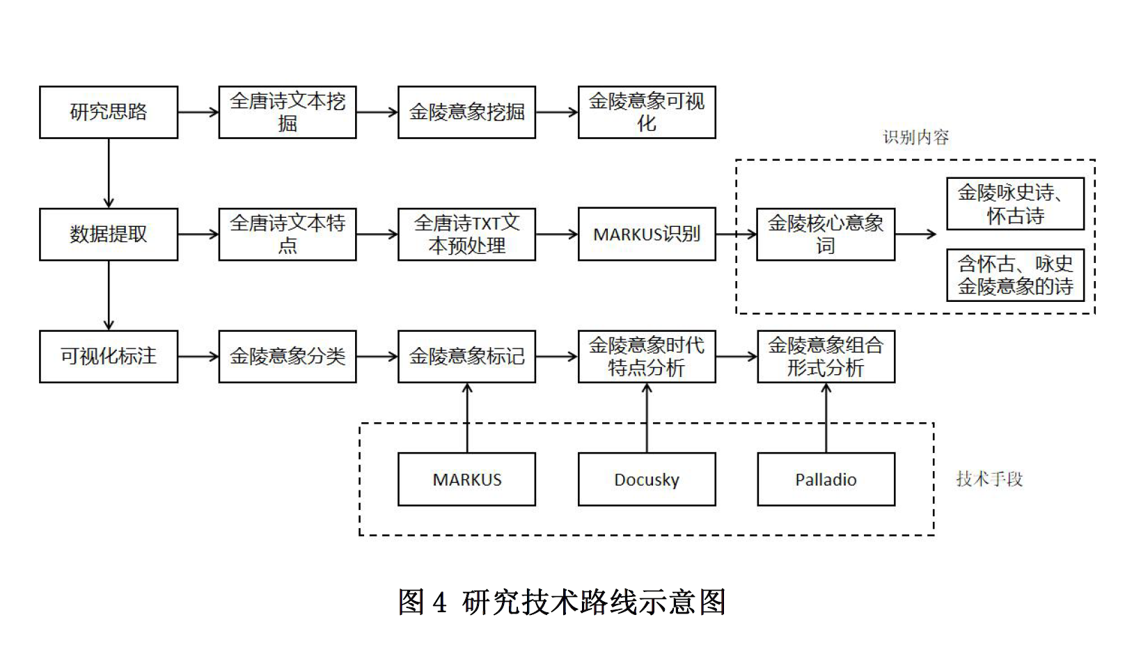 本研究以唐诗中的金陵意象为对象,以《全唐诗》为文本,试图采用文本挖掘、文本分析与文本可视化的方法,对唐诗金陵意象的时代特点和意象组合形式进行分析。